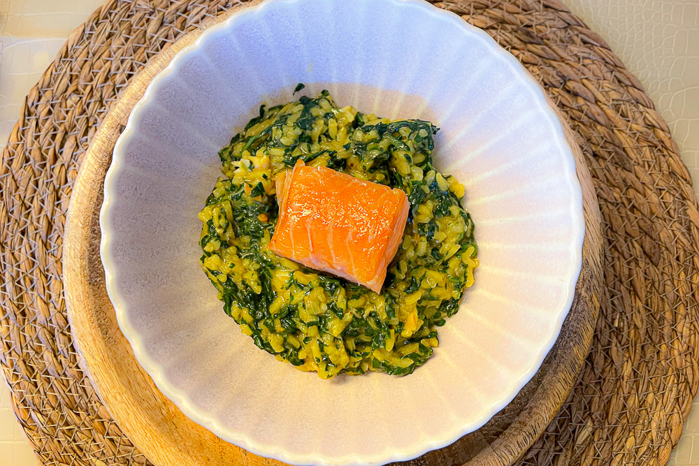 Risotto met verse spinazie en zalm