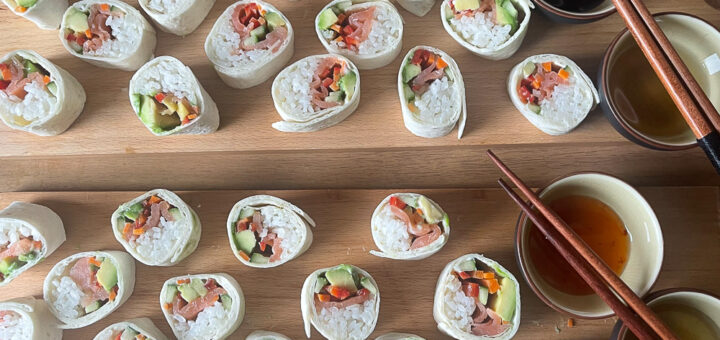 Met behulp van wraps maak je in deze lekkere sushi hapjes Dit Sushi burrito recept komt uit de Allerhande, je kunt ze met van alles vullen, dat is het fijne van deze tortilla sushi....