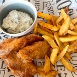 Doop de vis in het bierbeslag, zorg ervoor dat alle kanten goed bedekt zijn. Haal de vis uit het beslag, laat overtollig beslag eraf druppelen, maar niet te veel !